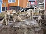 زلاجات تجرها الكلاب مقيدة بالسلاسل في منطقة سكنية