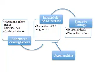 - Himeno, E; Ohyagi, Y; Ma, L; Nakamura, N; Miyoshi, K; Sakae, N; Motomura, K; Soejima, N; Yamasaki, R; Hashimoto, T; Tabira, T; LaFerla, FM; Kira, J (2011). "Apomorphine treatment in Alzheimer mice promoting amyloid-β degradation". Ann Neurol. 69 (2): 248–56. doi:10.1002/ana.22319. PMID 21387370. الوسيط