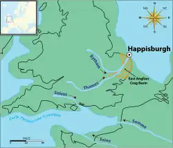 i/ˈheɪz.bɜrə/ HAYZ-bur-ə) في نورفولك، إنجلترا، ودمرها المد بعد فترة قصيرة.