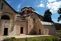 ![]() Clockwise from top left: Church of the Patriarchate of Peć, Our Lady of Ljeviš, church of the Visoki Dečani, a window at Visoki Dečani, church of the دير غراتشانيكا, fresco of Christ at Our Lady of Ljeviš | |