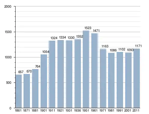 في سنة 1861 بلغ عدد السكان 657 نسمة، وتطور العدد ليصل في سنة 2011 لـ 1٬171 نسمة.