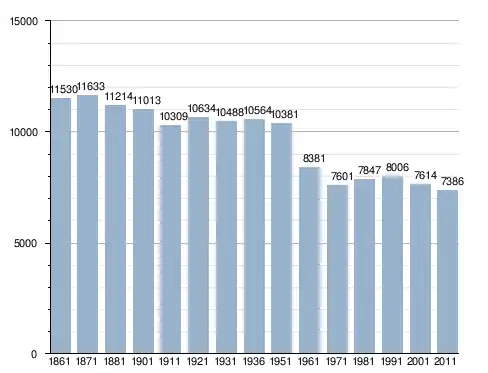 في سنة 1861 بلغ عدد السكان 11٬530 نسمة، وتطور العدد ليصل في سنة 2011 لـ 7٬386 نسمة.