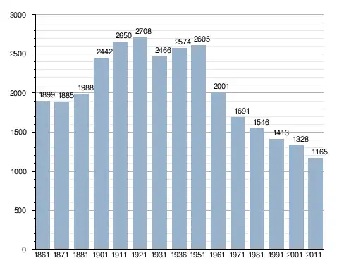 في سنة 1861 بلغ عدد السكان 1٬899 نسمة، وتطور العدد ليصل في سنة 2011 لـ 1٬165 نسمة.