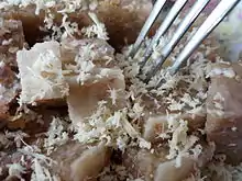 عادة ما يُقطع البختيجي ويقدم في مكعبات متساوية الحجم.