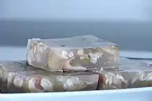 هلام لحم الخنزير عبارة عن شراب مصنوع من لحم الخنزير منخفض القيمة، مثل الأرجل، التي تحتوي على نسبة كبيرة من الأنسجة الضامة.[13] ويعتبر هلام لحم الخنزير من المقبلات الشهيرة وفي الوقت الحاضر، يجرى إعداده أحياناً بطريقة أكثر عصرية باستخدام اللحوم الخالية من الدهون، مع أو بدون بقايا لحم الخنزير التي يتم استبدالها بالجيلاتين الذي يُشترى من المتجر. ويحظى هذا النوع من الهلام بشعبية كبيرة في كرواتيا (خاصة في شمال غرب البلاد حيث يطلق عليه "hladetina أو hladnetina"/هالديتينا أو هالدنيتنيا" وفي صربيا يسمى "пихтије/بختجي" وفي بولندا يسمى "galareta/غالاريتا" وفي كلاً من رومانيا ومولدوفا يسمى "piftie ,răcitură/ بيفتي، رتشيتورا" وفي إستونيا "sült/سولت" وفي لاتفيا "aukstā gaļa/أكوستا غايا" وفي ليتوانيا "šaltiena/شالتينا" وفي سلوفاكيا "huspenina ,studeno/ستودينو، هوسبينينا" وفي المجر "kocsonya/كوتشانيا؛ وقد يشير الاسم أيضاً إلى أنواع أخرى من هلام اللحوم الأخرى) وفي اليونان "πηκτής/بيكتيس" وفي أوكرانيا كان يسمى في الأصل "холодец/خولوديتس" ولكن منذ 1930 أجبرت على استخدام الكلمات الروسية فيما عدا مجتمع الشتات الأوكراني حول أنحاء العالم. أما في روسيا وبيلاروسيا وأوكرانيا يسمى "холодец ,холодне/خولودني، خولوديتس" خلال عيد الميلاد أو عيد الفصح. وفي روسيا فإن هلام خولوديتس يعتبر طبقاً تقليدياً في فصل الشتاء خاصة خلال عيد الميلاد ورأس السنة الجديدة حيث يأكل مع طبق تشرِن (عجينة الفجل الحار) أو صلصة الخردل.[14] ويطلق عليه في فيتنام "thịt nđu đông/تيت إندو دونغ" خلال السنة القمرية الجديدة. كما يجرى حفظ اللحوم في فطائر لحم الخنزير باستخدام نفس الهلام.