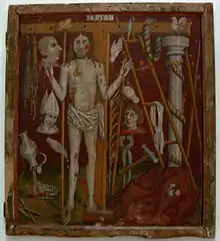 الوسيط|CitationClass=تم تجاهله (مساعدة) - "The Chester Cycle Play XVI (16) – The Passion of Christ – Annas and Caiphas". From Stage to Page. 2007. مؤرشف من الأصل في 14 مارس 2012. اطلع عليه بتاريخ 28 مارس 2010. الوسيط