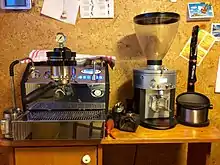 قد يكون أيضا آلة إسبرسوتشمل عصا البخار التي تستخدم في البخار والسوائل المرغية لتشمل الحليب، والمشروبات المتعلقة بالقهوة مثل الكابتشينو وكافيه لاتيه. يمكن أن تكون آلات إسبريسو مدفوعة بالبخار، ومحرك مكبس، مضخة مدفوعة، أو مضخة مدفوعة بالهواء. قد تكون الآلات يدوية أو تلقائية، وهناك آلة جديدة تمنحك المذاق اللذيذ وسهولة عمل القهوة في منزلك في دقائق من خلال وضع "كبسولة" في الماكينة.[1]