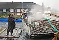 آلة الضغط العالي تستعمل لتنظيف هيكل قارب.