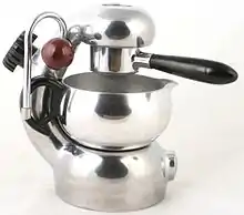 هناك تقنية مختلفة حديثة، تسمى مثعب التوازن، وهي عبارة عن وعائين وضعا جنبًا إلى جنب بترتيب الجهاز على شكل ميزان، مع الوزن المقابل المرفق أمام الوعاء (التسخين) الأولي. عندما يُجبر الماء القريب من الغليان على التحرك من وعاء التسخين لوعاء التحضير الآخر، وتم تنشيط الوزن المقابل، مما يتسبب في نزول مطفئة الشموع الزنبركية على الشعلة، ومن ثم، تنطفئ الشمعة وسمح للماء البارد بالعودة إلى الوعاء الأصلي. وبهذه الطريقة، تم التوصل إلى نوع بدائي للتحضير "الآلي" للقهوة.