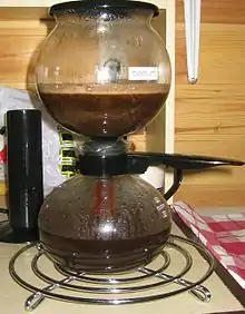 ويتمثل مبدأ طريقة تحضير القهوة بالتخلية في تسخين المياه في الوعاء السفلي حتى يجبر التوسع المحتويات على التحرك خلال أنبوبة ضيقة إلى الوعاء العلوي الذي يحتوي على القهوة المطحونة. وعندما يصبح الوعاء السفلي فارغًا وقد مضى وقت التحضير المطلوب، يتم إزالة الحرارة ويوجه الفراغ الناتج القهوة المخمرة للعودة إلى الوعاء السفلي خلال مصفاة، التي من خلالها يمكن صب القهوة. ويمكن رؤية إصدار باوهاوس من هذا الجهاز في جهاز تحضير القهوة الموجود لدى جيرهارد ماركس (Gerhard Marcks) عام 1925.