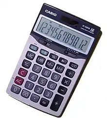 الحاسبة آلة إلكترونية مكتبية تستخدم لإجراء العمليات الحسابية.[1][2][3] وتعد الآلة الحاسبة الجد الأكبر لعائلة الحواسيب، ويعد الشكل الذي وصلت له الآلة الحاسبة اليوم هو نتاج عمل باسكال حتى عام 1640 ميلادي، لكن قبل ذلك كانت هنالك الكثير من النماذج البسيطة للآلة الحاسبة. ويختلف حاسب الجيب عن الحاسوب بكونه ذو قدرة أصغر من الحاسوب العادي على حل المسائل الحسابية، وبأنّه صمّم خصيصًا ليجري به المستخدم حساباته بشكل مباشر دون أن يحتاج لأي قدرات في البرمجة، وأحيانًا دون أن تكون للآلة إمكانيات برمجة إطلاقًا.