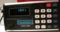 أول آلة حاسبة إلكترونية بحجم الجيب كانت بوسيكوم LE-120A "هاندي" ، والتي تم تسويقها في وقت مبكر في عام 1971. صُنعت في اليابان ، وكانت أيضًا أول آلة حاسبة تستخدم شاشة LED ، وهي أول آلة حاسبة يدوية لاستخدام دائرة متكاملة واحدة (تم الإعلان عنها بعد ذلك على أنها "آلة حاسبة على شريحة") ، و موستيك MK6010 ، وأول آلة حاسبة إلكترونية لتشغيل البطاريات القابلة للاستبدال. باستخدام أربع خلايا بحجم AA ، يقيس LE-120A 4.9 × 2.8 × 0.9 بوصة (124 ملم × 71 ملم × 23 ملم).