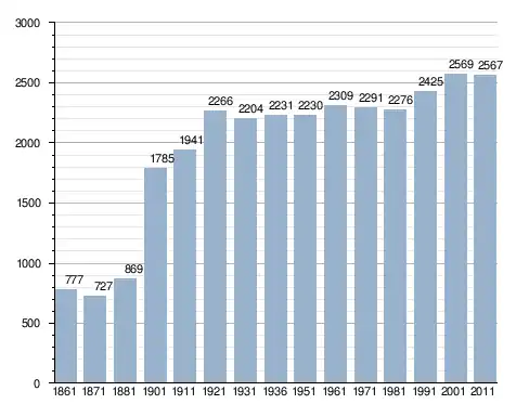 في سنة 1861 بلغ عدد السكان 777 نسمة، وتطور العدد ليصل في سنة 2011 لـ 2٬567 نسمة.