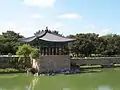 كجزء من مشروع ترميم المواقع الأثرية في غيونغجو، فقد أزيل الوحل أسفل البركة وأعيد بناؤها في سنة 1974. مشروع الاستخراج طويل المدى من مارس 1975 إلى ديسمبر 1986 أثمر في إيجاد عدد كبير من القطع الأثرية في البركة. أثمرت الأبحاث في اكتشاف أن البركة كانت محاطة بجدران حجرية وأن خمس مباني كانت تحيط بها من الجنوب والغرب، كما كشفت أنظمة الممرات المائية. قرابة 33 ألف قطعة من الآثار التاريخية استخرجت من الموقع. استخرجت العديد من قراميد السقف ذات الشكل الفريد، كما استخرجت العديد من المواد المعمارية، والفخاريات، وأصنام بوذا البرونزية المذهبة، والمجوهرات، والإكسسوارات، وأدوات الاستعمال اليومي مما قدم نظرة إلى الفنون البوذية والحياة اليومية في شلا.[2]