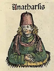 |CitationClass=تم تجاهله (مساعدة) - ديوجانس اللايرتي, in The Lives and Opinions of Eminent Philosophers, as translated by C. D. Yonge (1853), "Anacharsis" sect. 5, p. 47