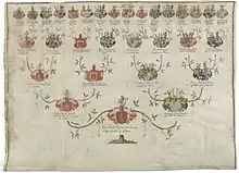 ahnentafel ( الألمانية لـ"جدول الأسلاف"؛ تلفظ ألماني: [ˈʔaːnənˌtaːfəl] أو ahnenreihe ("سلسلة الأسلاف" ؛ تلفظ ألماني: [ˈʔaːnənˌʁaɪə] ) هو نظام ترقيم الأنساب لإدراج أسلاف الشخص المباشرين في تسلسل ثابت من الصعود.[1] يتم سرد موضوع (أو مستلفت ) من ahnentafel كما no 1 ، والد الموضوع no 2 والأم no 3 ، أجداد الأب no 4 وno 5 وأجداد الأم no 6 و no 7 ، وهلم جرا، والعودة عبر الأجيال. بصرف النظر عن no 1، الذين يمكن أن يكونوا ذكرًا أو أنثى، وجميع الأشخاص ذوي الأرقام الزوجية هم من الذكور، وجميع الأشخاص ذوو الأرقام الفردية هم من الإناث. في هذا المخطط، يكون عدد والدي أي شخص ضعف عدد الشخص، وأم والدة مضاعفة رقم الشخص بالإضافة إلى رقم واحد. باستخدام هذا التعريف للترقيم، يمكن للمرء أن يستمد بعض المعلومات الأساسية عن الأفراد المدرجين في القائمة دون بحث إضافي.