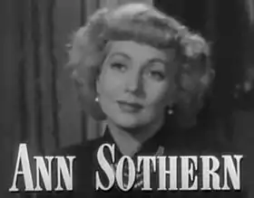 آن سوثرن (بالإنجليزية: Ann Sothern) هي مغنية وممثلة أمريكية، ولدت في 22 يناير 1909 بداكوتا الشمالية في الولايات المتحدة، وتوفيت في 15 مارس 2001 بأيداهو في الولايات المتحدة بسبب قصور القلب.[8][9][10] بدأت مشوارها المهني سنة 1927، ومن الجوائز التي نالتها جائزة الغولدن غلوب سنة 1959.