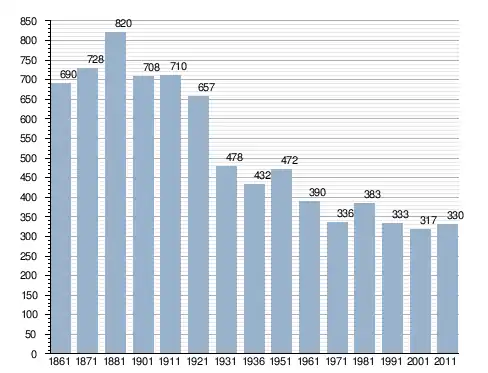 في سنة 1861 بلغ عدد السكان 690 نسمة، وتطور العدد ليصل في سنة 2011 لـ 330 نسمة.