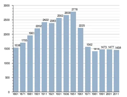 في سنة 1861 بلغ عدد السكان 1٬538 نسمة، وتطور العدد ليصل في سنة 2011 لـ 1٬458 نسمة.