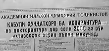 - 2002: ^ Siddikzoda, S. "Tajik Language: Farsi or not Farsi?" in Media Insight Central Asia #27, August 2002