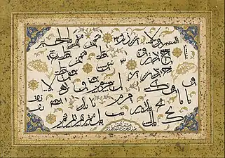 |CitationClass=تم تجاهله (مساعدة) - حبش, حسن قاسم (2014-01-01). جواهر الخطاطين في فن كتابة خط الثلث - فن الخط العربي. Dar Al Kotob Al Ilmiyah دار الكتب العلمية. ISBN 9782745184191. مؤرشف من الأصل في 9 ديسمبر 2018. الوسيط