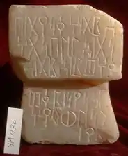 | 𐩼 | theth | ẓ | /θˤ/ | دائري | ظ | |||||