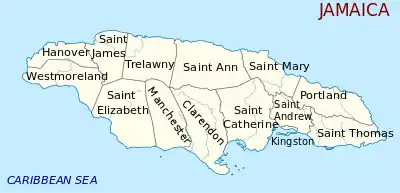 | 4 | أبرشية تريلاوني Trelawny | 874.6 | 75,164 | فولماوث Falmouth |