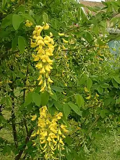 أبنوس كاذب (الاسم العلمي: Laburnum anagyroides) شجرة مثمرة من فصيلة القرنيات الفراشية تعلو حوالي 10 أمتار. لحاؤها مالس، رمادي اللون الأخضر. خشبها فاتح اللون يميل إلى البني مع الوقت. أغصانها نازلة. أوراقها متعاقبة، ثلاثية، خضراء الصفحة العُليا، بحرية اللون على السُفلى. أزهارها عناقيد متدلية ذهبية اللون الأصفر. اللثمرة قرن بني اللون.[2]