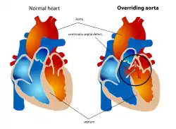 إنَّها واحدة من الاكتشافات الأربعة في رباعية فالو التقليديّة، والاكتشافات الثلاثة الأُخرى هي انْسِداد مَسْلَك تَدَفُّق البُطين الأيمن (غالبًا تَضَيُّق تحت رئويّ) وضَخامَة البُطين الأيمن وعيب حاجزيّ بُطينيّ.