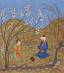 ![]() الغزالي يخاطب مريدا - من مخطوطة فارسية. | |