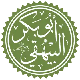 أحمد بن الحسين بن علي بن موسى الخراساني البيهقي المشهور بـالبيهقي، ولد في بيهق (384 - 458 هـ).[2] الإمام المحدث المتقن صاحب التصانيف الجليلة والآثار المنيرة تتلمذ على جهابذة عصره وعلماء وقته وشهد له العلماء بالتقدم