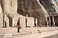 بجوار الساقين للتمثال الضخم، هناك تماثيل أخرى لا تزيد في الارتفاع عن الركبتين من الفرعون.[4] وهذا يصور نفرتاري الزوجة الرئيسية لرمسيس، والملكة الأم موتاي، وله ابنان أمون هر خبشف، رمسيس، وله ست بنات بنتاناث، باكتموت، نفرتاري، مريتامن، نيبتاوي، وأستنوفرت.