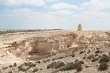 تتواجد سلسلة من المقابر وآثار معبد على امتداد نتوء جبلي من الحجر الرملي[1] يحدها البحر من الشمال والبحيرة من الجنوب.