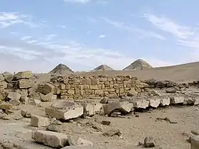 ![]() آثار معبد شمس ني أوسر رع في أبو غراب. في الخلفية، أهرامات أبو صير. آثار معبد شمس ني أوسر رع في أبو غراب. في الخلفية، أهرامات أبو صير. | |