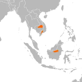 - هذه الأنواع تعيش في كمبوديا وجنوب فيتنام، لاوس وكالمنتان الشرقية في إندونيسيا.