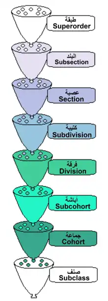 مثال على ترتيب التصنيفات من جماعة إلى بند الأكثر تداولا ضمن علم الحيوان
