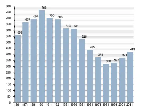 في سنة 1861 بلغ عدد السكان 558 نسمة، وتطور العدد ليصل في سنة 2011 لـ 419 نسمة.