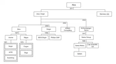 رسم تخطيطي لتاريخ عمليات الاستحواذ Atos