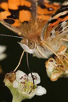 - الخرطوم: وهو تركيب انبوبي لولبي من أهم ما يميز هذا النوع من الحشرات, يكون ملفوف اسفل الرأس في حالة عدم استخدامه. عند الطعام يمتد هذا الخرطوم للوصول إلى رحيق الازهار. وفي الحشرات الثاقبة-الماصة يكون الفك محور ليشكل الخرطوم وهو قادر على اختراق الانسجة وامتصاص السوائل