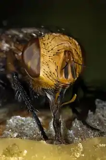 وفى هذا النـوع لا يوجد الزوج الأمامى من الفكوك والزوج الخلفى مضمحل مختصر ويمثله زوج الملامس الفكية وساق الفك فقـط. وعندما تتغذى الذبابة على طعام سائل فإن الوسائـد ذات القصيبـات توضع بملامسة السائل وبذا تمتلئ بواسطة الخاصة الشعرية. وتقود جميـع القصيبـات إلى نقطة واحدة بالقرب من فتحة أنبوبة الطعام.