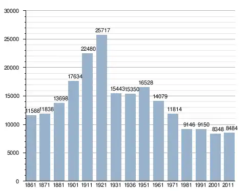 في سنة 1861 بلغ عدد السكان 11٬588 نسمة، وتطور العدد ليصل في سنة 2011 لـ 8٬484 نسمة.
