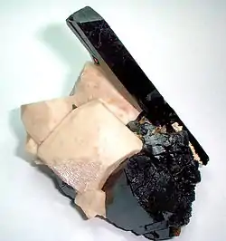 ![]() Monoclinic crystal of aegirine with orthoclase, from Mount Malosa, Zomba District, Malawi (size: 85 mm x 83 mm; 235 g) | |
