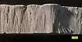 مقطع عرضي من الكتل الحجرية تظهر طبقات تشبه حلقات جذوع الشجر.
