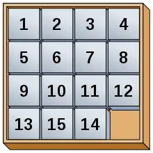 أحجية 15 هي أحجية انزلاقية تتكون من إطار مساحته 4×4 به قطع خشبية أو حجرية مرتبة ترتيباً عشوائياً مع مساحة فارغة لقطعة واحدة. توجد الأحجية أيضاً في أحجام أخرى أصغر، بحيث يكون حجم الإطار 3×3، فيكون اللغز هو أحجية 8. هدف اللغز هو تنظيم القطع وإعادة ترتيبها بشكل صحيح بتحريكك القطع بانزلاقها بواسطة المساحة الفارغة.