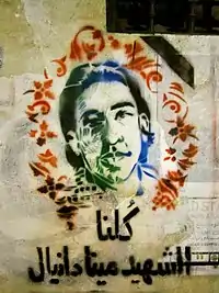 |CitationClass=تم تجاهله (مساعدة) - "مينا دانيال.. جيفارا المصري الذى دافع عن شعار مسلم مسيحى أيد واحدة ". مصراوي.كوم. مؤرشف من الأصل في 29 مايو 2020. اطلع عليه بتاريخ 29 مايو 2020. الوسيط