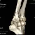 ![]() الأحدوبة الكعبرية ظاهرة في الرسم عند عنق عظم الكعبرة (على يمين الصورة) الأحدوبة الكعبرية ظاهرة في الرسم عند عنق عظم الكعبرة (على يمين الصورة) | |
