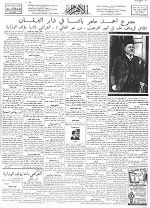 |CitationClass=تم تجاهله (مساعدة) - مصرع احمد ماهر باشا، ميكروفيلم من جريدة الأهرام [وصلة مكسورة] نسخة محفوظة 07 2يناير6 على موقع واي باك مشين.