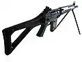 - بحالة الأخمص القابل للطي، فهو يسهل حمل ونقل السلاح لأنه يقلل من طوله.
