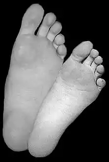 ![]() أخمص قدم ذكر (يسار) وأخمص قدم أنثى (يمين). | |