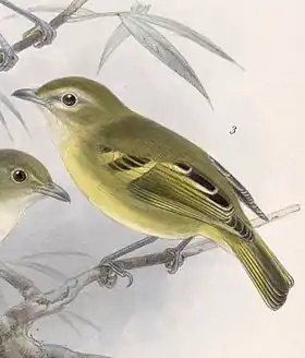 - أخيضر ذهبي (الاسم العلمي:Vireo hypochryseus)